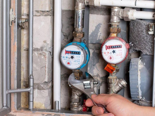 - Установка нового водосчётчика. Монтаж выполняется с соблюдением направления потока, уровней и требований ГОСТ.